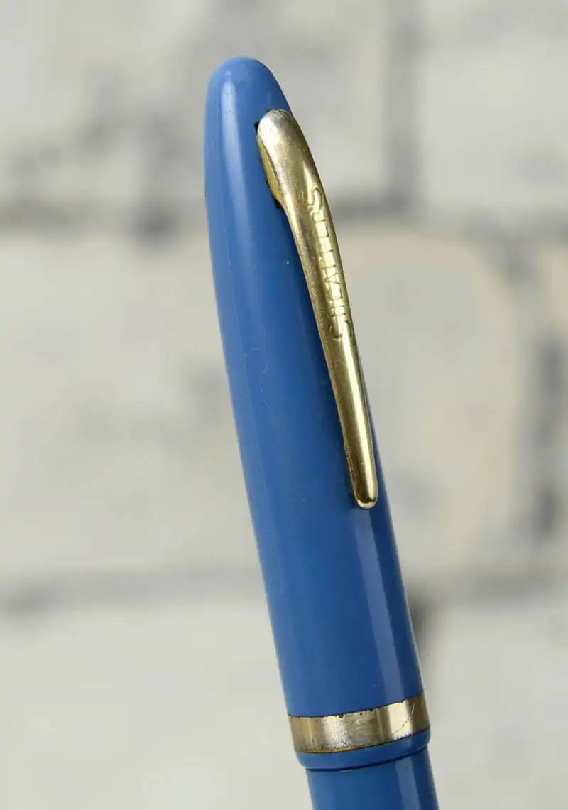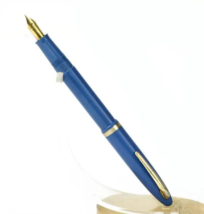 Vintage sheaffer cadet teal blue touchdown fountain pen in perfect used condition, with 14K solid gold F nib. Pen is in perfect working condition. the touchdown filling is working. Circa 1950.