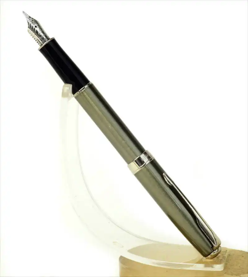 parker sonnet metallic grey fountain pen with 18K solid gold rhodium M nib – Near NOS
