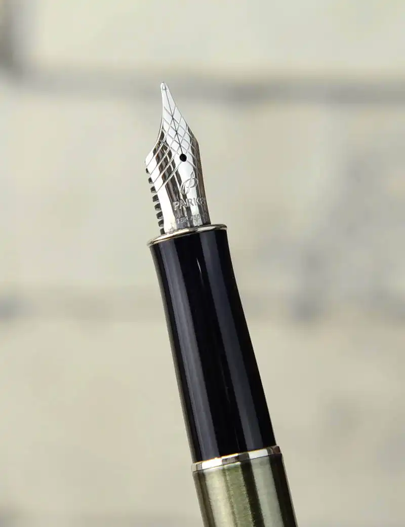 Parker sonnet metallic grey green barrel fountain pen with 18K gold rhodium plated M nib Specifications: