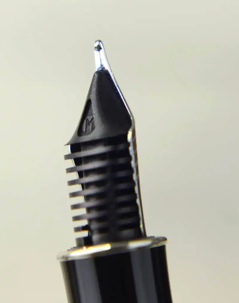 Nib Size & Material: M point size 18K gold rhodium plated nib and chrome trim clip.