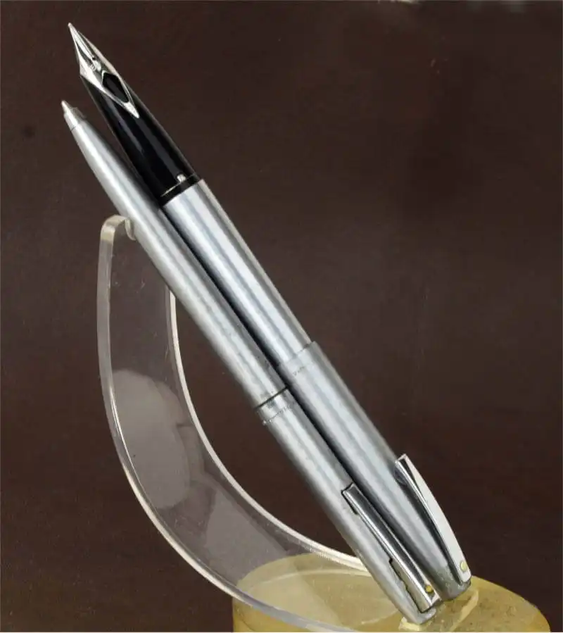 Used vintage sheaffer imperial 444 fountain pen and ballpoint set in used condition. brushed steel metal body, no scratches , cracks or dents. pen will be shipped only after detailed testing. We will ink the pen to make sure its working.