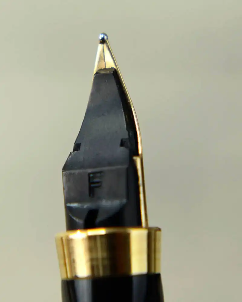 Nib :- The nib is 585 14K solid gold F nib writes wet smooth strictly in F range.